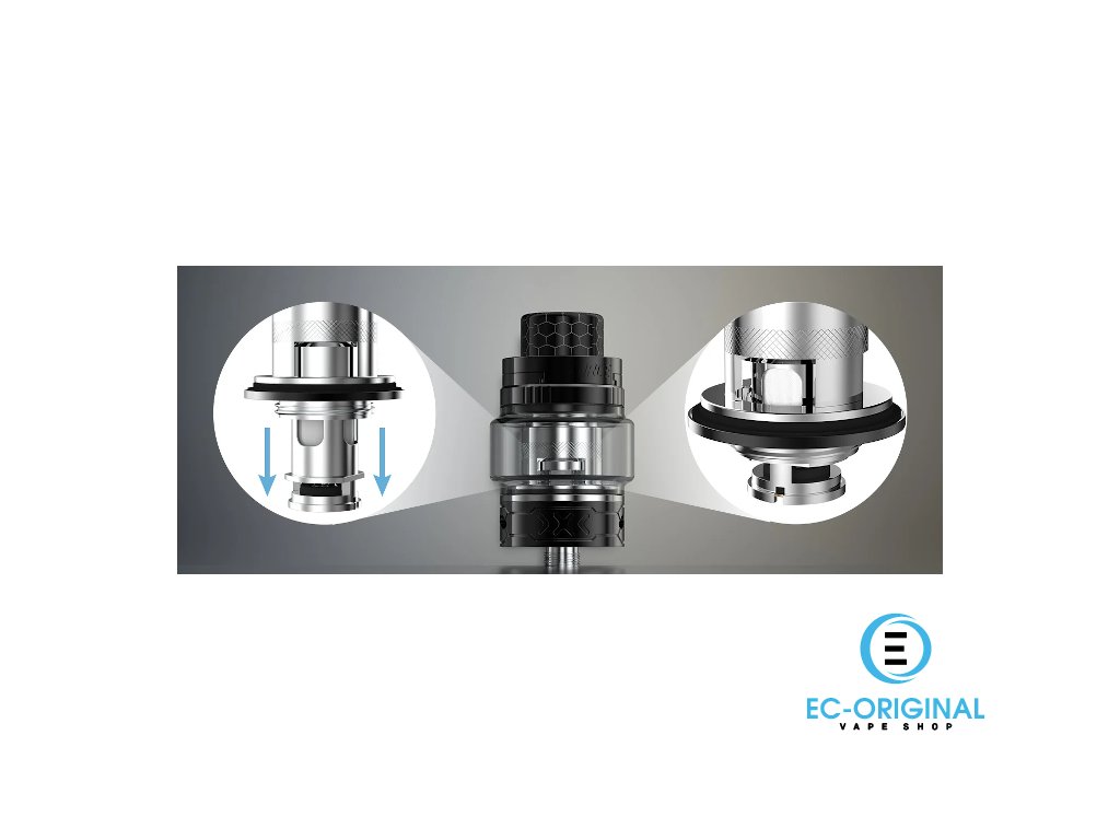 Z Force tank je vybaven speciálním odpruženým systémem, který umožňuje výměnu hlavy i v případě, že je tank naplněn. Po vytažení hlavy z tanku se totiž uzavřou otvory přivádějící e-liquid k hlavě a poté je možné jednoduše hlavu vyměnit.