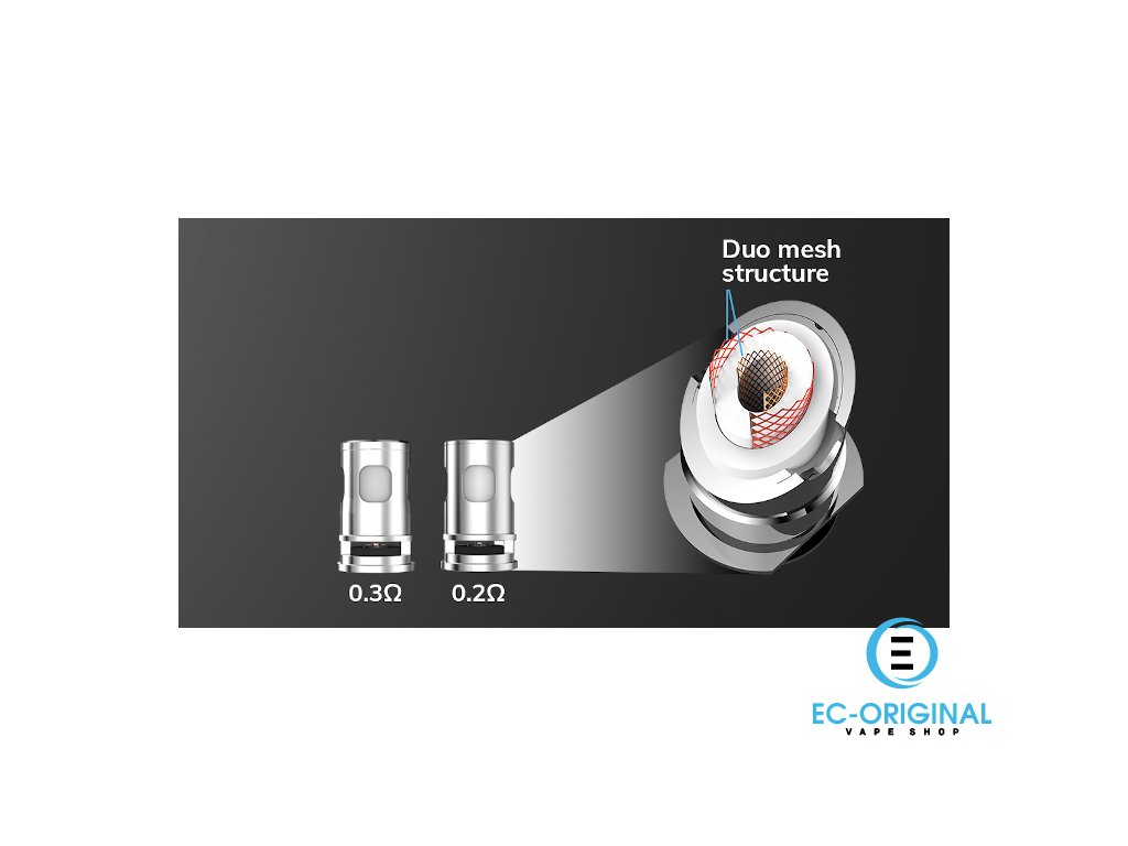 V sadě najdete dvě žhavící hlavy. Již předinstalovaná je hlava s odporem 0,2Ω a doporučeným výkonem 50W-80W. Připravená je také náhradní hlava s odporem 0,3Ω a doporučeným výkonem 30W-45W. Zatímco s první hlavou si užijete krásně volné potahy s bohatými mraky páry, druhá hlava poskytne o něco utaženější vapování přímo do plic.