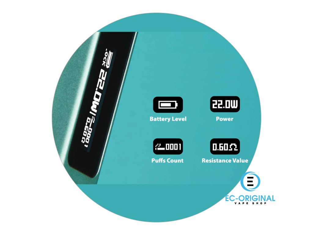 V těle zařízení se ukrývá integrovaná baterie s ohromující kapacitou 2000 mAh. Díky velké kapacitě baterie nabídne perfektní výdrž na jedno nabití a podporu intenzivního potahování i na vyšší výstupní výkon. Milovníky rychlého nabíjení potěší přítomnost moderního dobíjecího portu USB-C s podporou dobíjení až 2A.
