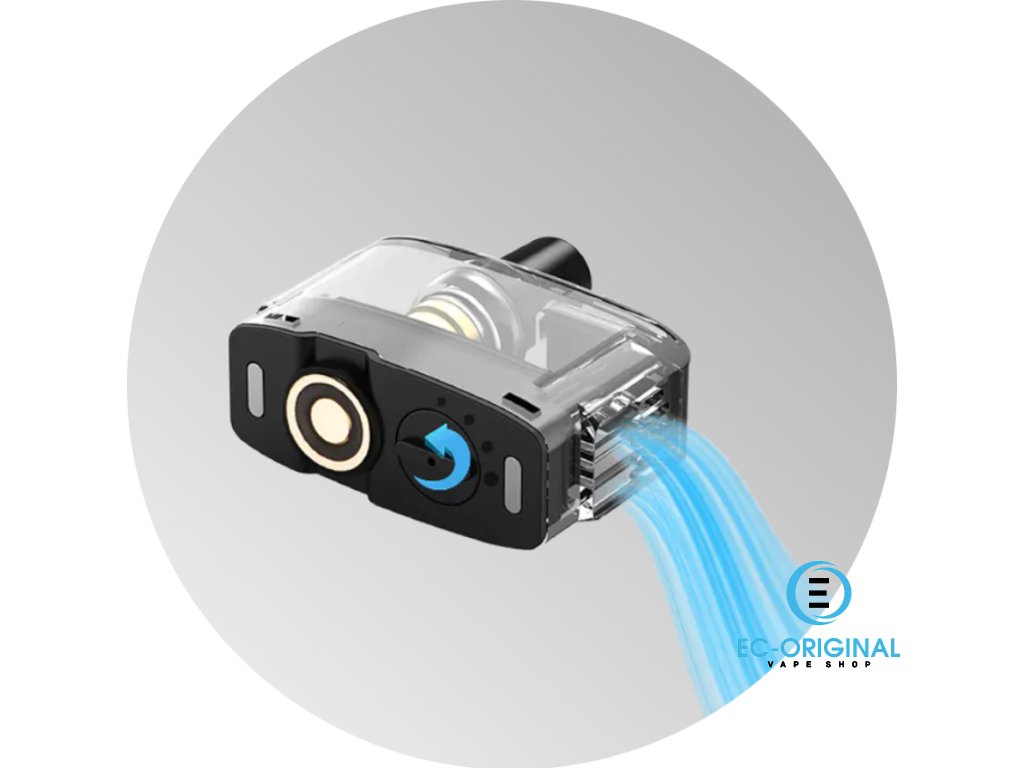 Díky praktické regulaci přívodu vzduchu si můžete přesně nastavit volnost potahu podle svých preferencí – ať už dáváte přednost MTL, nebo RDL stylu vapování. Stačí odejmout cartridge a otočit kolečkem regulace Airflow do požadované polohy. Přehledné piktogramy vám navíc usnadní orientaci, jak moc je přívod vzduchu otevřený či uzavřený, takže si můžete zážitek z vapování doladit do posledního detailu.