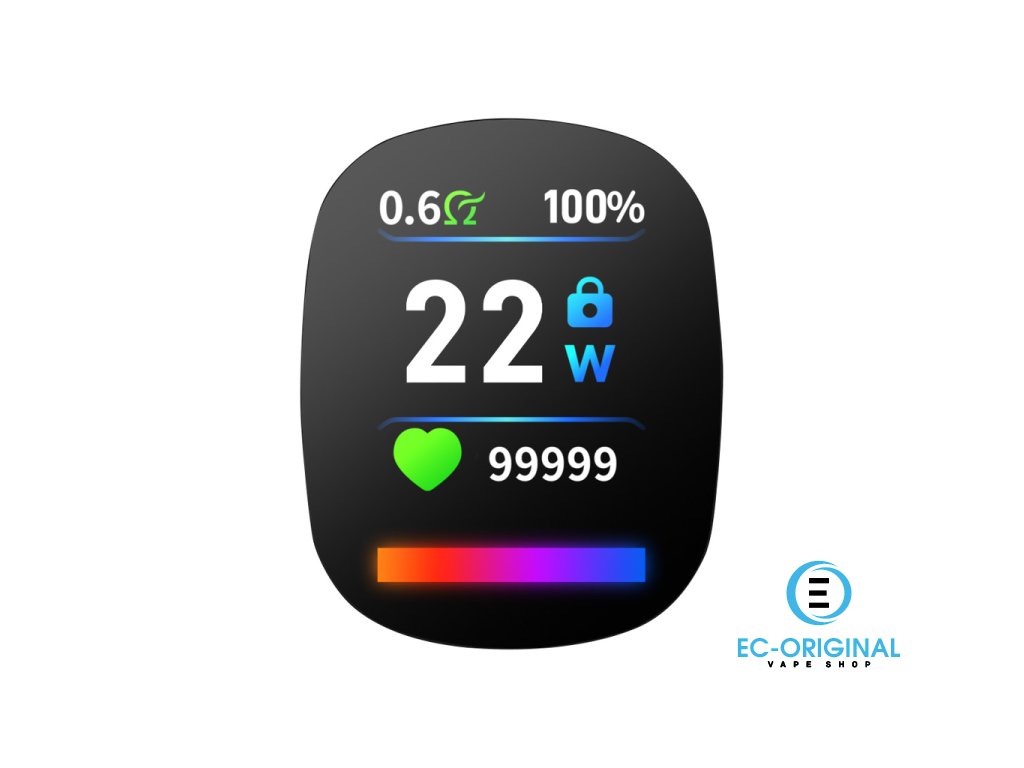 Proslulá a vysoce efektivní kontrola teploty při žhavení u čipsetu DNA se postará o bezpečný provoz bez vzniku dry hitu. Pokud vám uvnitř cartridge dojde e-liquid, žhavení se jednoduše pozastaví a vyskočí na vás chybová hláška, abyste doplnili e-liquid. Nemusíte se tak obávat zkreslení chuti a nepříjemného zápachu při potažení prázdné cartridge. Výrobce čipu DNA Evolv si na teplotní kontrole velice zakládá a vypiplal ji k opravdové dokonalosti.