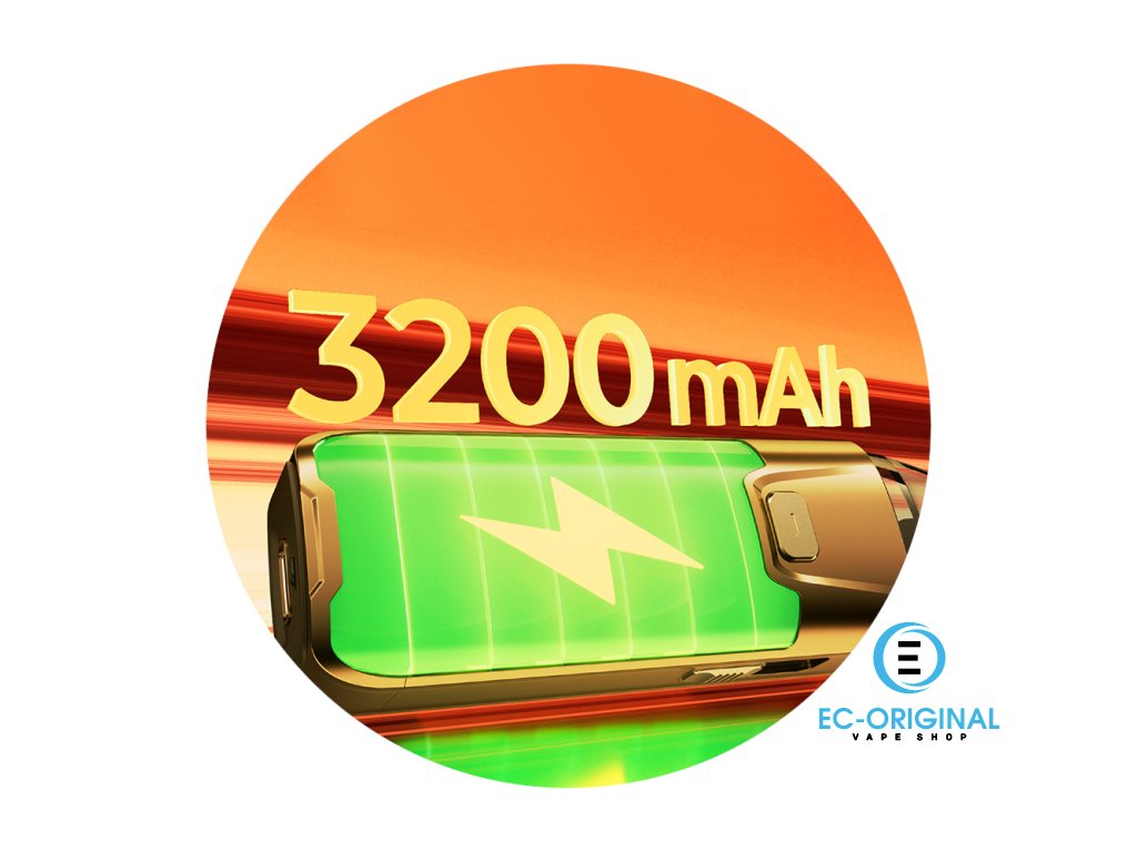 Model LUXE XR MAX 2 se může pochlubit výkonnou baterií, která jeho výkon skvěle doplňuje. V těle pod systému je umístěna baterie s kapacitou 3200 mAh, což představuje o 14 % více energie než jeho předchůdce LUXE XR MAX, přičemž si zařízení zachovává stejně kompaktní rozměry. Tato baterie zajišťuje stabilní výkon pro intenzivní vapování a rychlý náběh žhavení. Nechybí ani podpora rychlého nabíjení s proudem až 2 A, což je velmi praktická funkce pro uživatele na cestách.