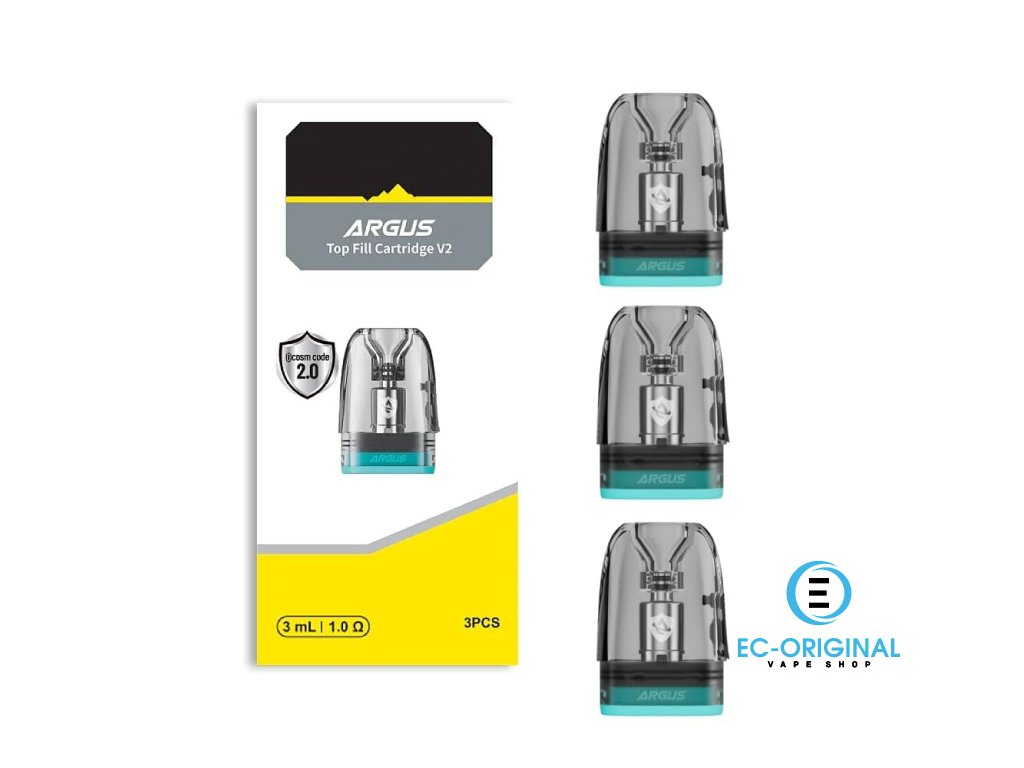 Upozornění: Cartridge Argus Pod Top Fill V2 s odporem 0.4Ω je kompatibilní pouze s novými modely od Argus P2, Argus G2 a G2 Mini, Argus A, další zařízení z platformy Argus Pod nepodporují tento nízký odpor!