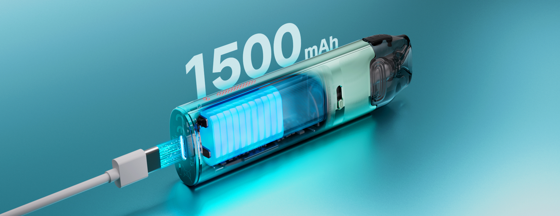 VooPoo Vmate i3 je vybaven vysokokapacitní integrovanou baterií o hodnotě 1500 mAh, která zajistí dostatek energie pro dlouhou a intenzivní výdrž. Dobíjení budete potřebovat jen zřídka, a když nastane čas doplnit energii, potěší vás možnost rychlého nabíjení s podporou adaptérů 5V / 2A. Baterii tak snadno dobijete na plnou kapacitu během krátké chvíle.