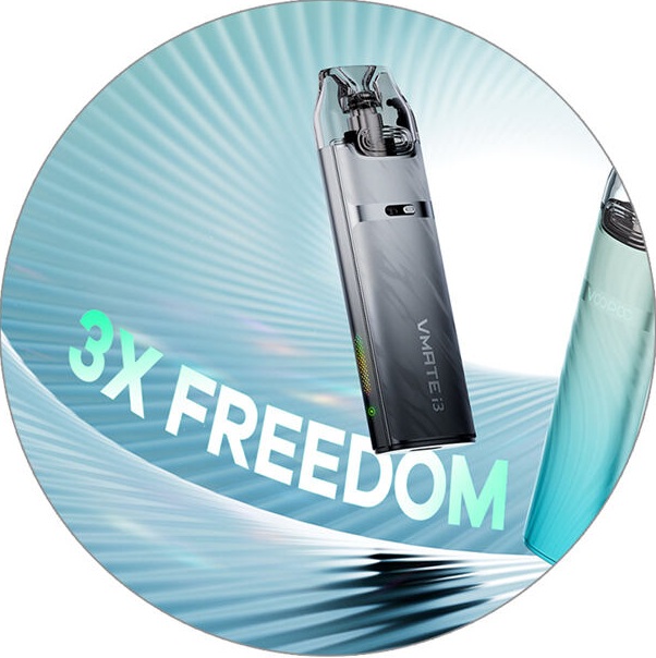 VooPoo představuje třetí generaci oblíbeného pod systému pro začátečníky – model Vmate i3. Tato verze disponuje vestavěnou baterií o kapacitě 1500 mAh a inovovanými cartridgemi Vmate V3, které zajišťují delší životnost a intenzivnější chuť při každém potahu. Stav baterie pohodlně sledujete díky novému LED indikátoru na boku, doplněném efektním neonovým animovaným proužkem. Vmate i3 je elegantní e-cigareta určená především pro nové a nenáročné uživatele. V kompaktním těle máte k dispozici silnou baterii, plně automatický provoz i praktickou páčku pro nastavení airflow. Pokud hledáte ideální vstupní zařízení pro MTL vaping, Vmate i3 je skvělou volbou.
