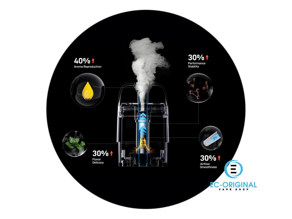 Vaporesso neustále inovuje, aby vaperům po celém světě poskytl ten nejlepší zážitek z chuti. V páté generaci zařízení XROS se proto setkáte s modernizovanou technologií COREX 3.0. Tato technologie využívá vysoce kvalitní mesh strukturu typu hive v kombinaci s organickou vatou z nano-mikrovlákna. Byla také přepracována komora pro výstup páry, což zajišťuje jemnější a výraznější chuť a lepší stabilitu cartridge při tvorbě páry. Užijte si svůj oblíbený e-liquid s touto důmyslnou technologií a objevte jedinečné výhody platformy XROS.
