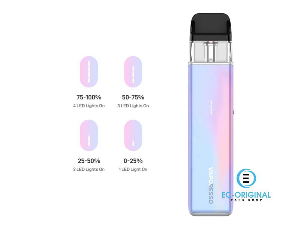 Na přední straně e-cigarety XROS 5 Mini se nachází praktická indikační dioda, složená ze čtyř samostatných čárek. Tato dioda vám umožňuje mít neustálý přehled o stavu baterie. Díky detailnímu indikátoru, který ukazuje zbývající kapacitu v krocích po 25 %, můžete snadno zjistit, kolik energie vám ještě zbývá, a nemusíte se tak obávat nečekaného vybití.